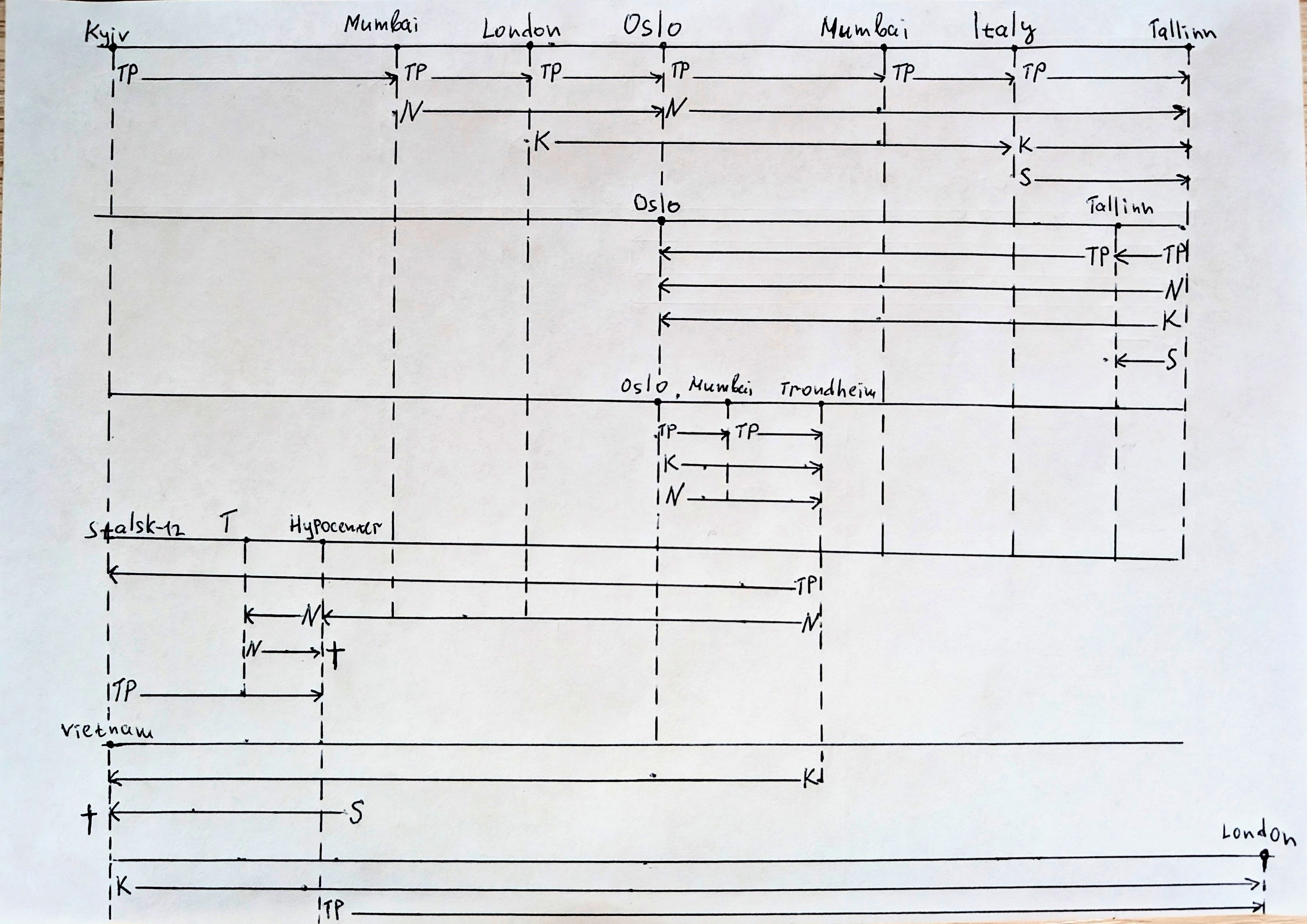 Now we can summarize movements of the main characters through space and time.